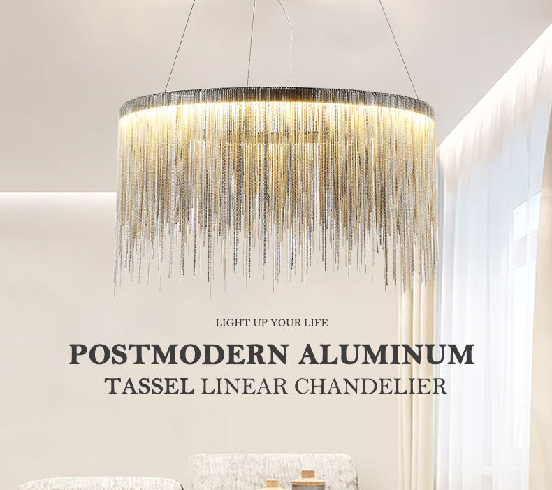 Modern Round Aluminum Tassel Linear Chandelier Pendant Light Fixture — ANTOINE LIGHT Skip to content