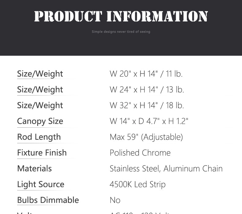 • Lighting Bulb: Daylight white 4500K LED strip (Included, Not dimmable). It can be customized warm white 3000K or cool white 6000K LED strip.